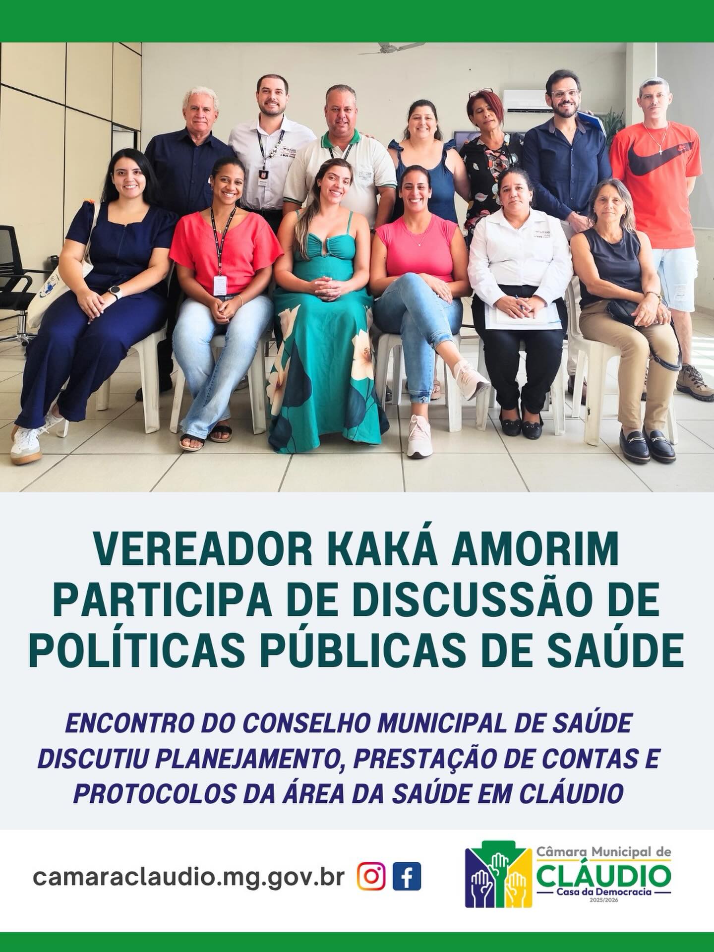 O vice-presidente da Câmara Municipal de Cláudio, vereador Kaká Amorim (Republicanos), participou, na manhã de quarta-feira, dia 25, da 343ª reunião do Conselho Municipal de Saúde, realizada na sede da Secretaria Municipal de Saúde.