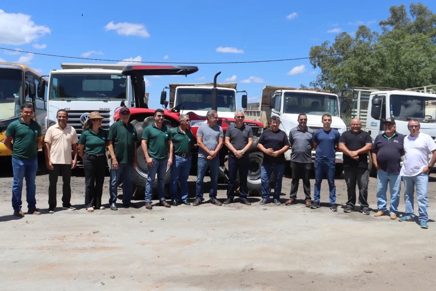 Aécio chegou ao local da entrega, a garagem da prefeitura, acompanhado de assessores e de sua base de apoio, além da presença do prefeito, vice-prefeito e equipe de governo.
