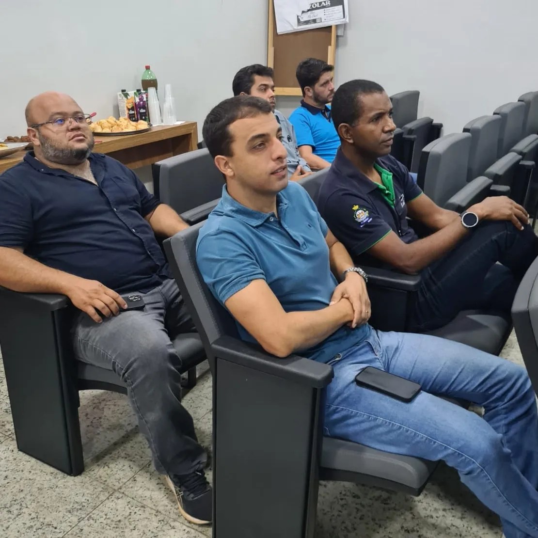 O Presidente Kedo Tolentino, o vice-presidente Fernando Tolentino e os vereadores Sargento Moisés, Simental e Tim Maritaca estiveram presentes no encontro conduzido por Raquel Carnin, CEO da empresa Nova Era Soluções Ambientais.