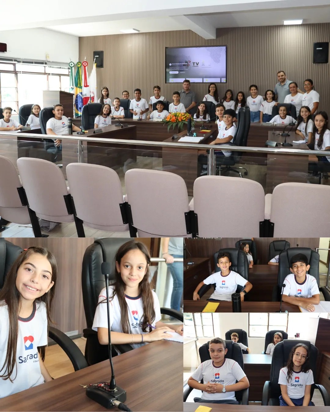 Pelo menos 22 alunos do quinto ano do Colégio Sagrado Coração estiveram conhecendo as dependências e o funcionamento da Câmara Municipal de Cláudio.