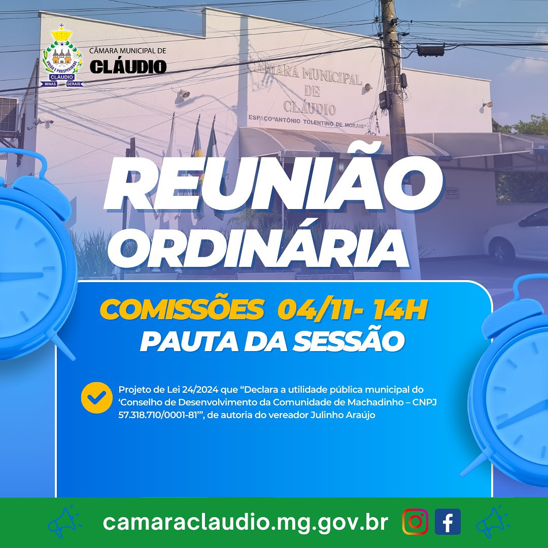Nesta segunda-feira (04), a Câmara Municipal realiza duas sessões ordinárias, sendo a reunião das Comissões Permanentes, às 14h, e a reunião Plenária, às 18h.