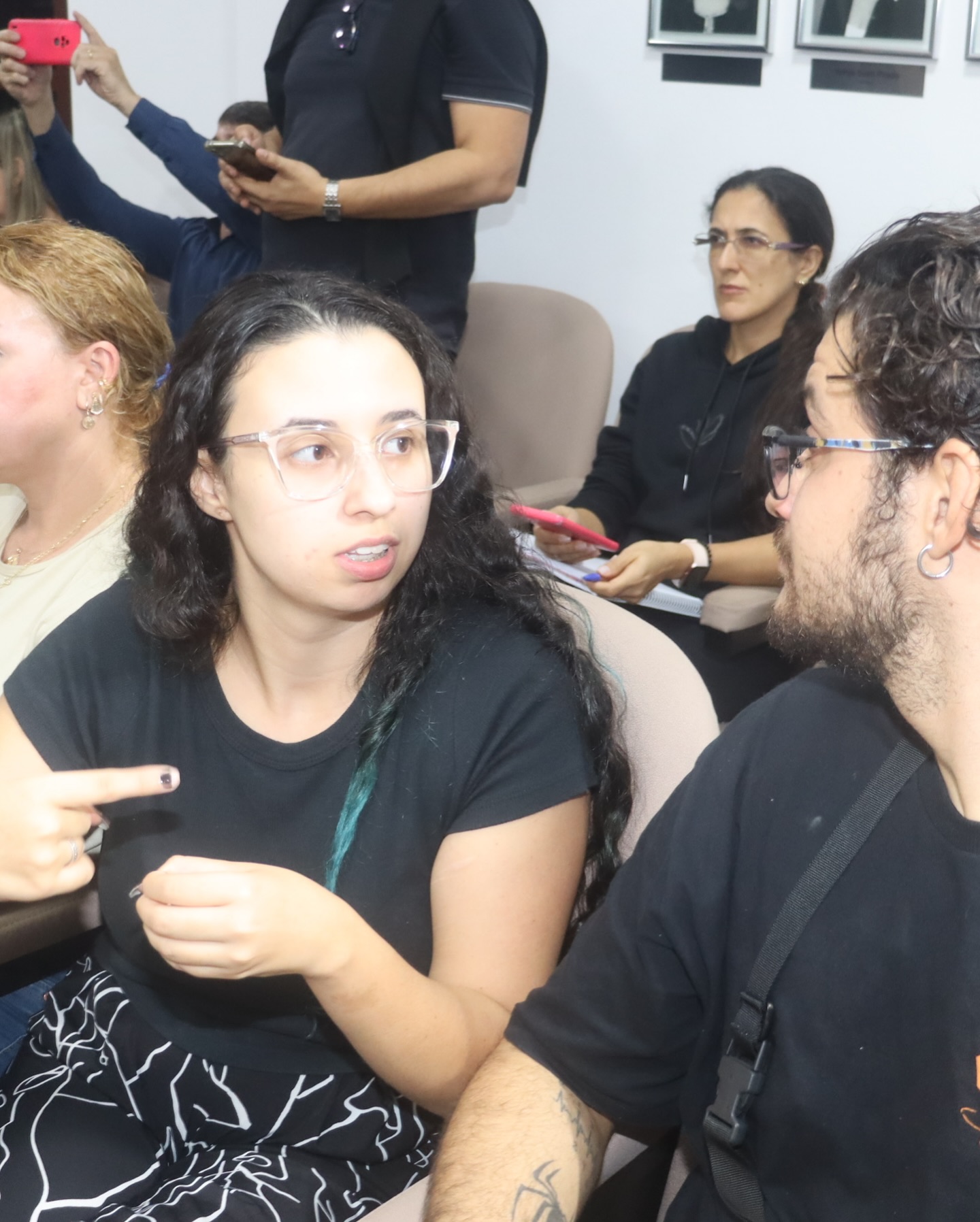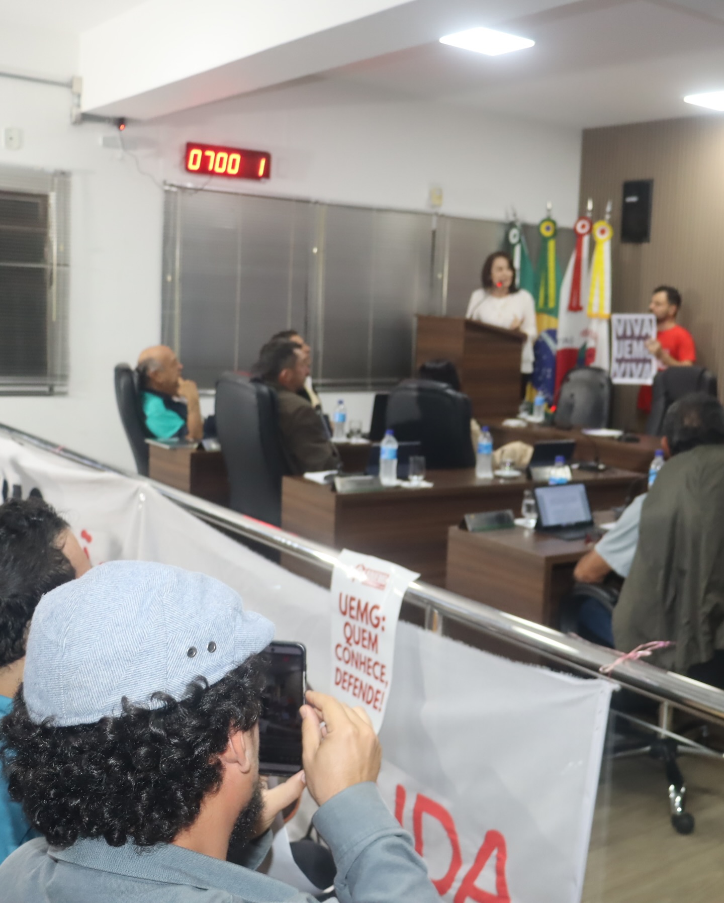 A diretora acadêmica da unidade, Valdilene Gonçalves Machado Silva, utilizou a Tribuna Livre acompanhada do professor Lucas Loli Vieira. O plenário lotado contou com a presença de professores, estudantes e membros do Diretório Acadêmico da UEMG.