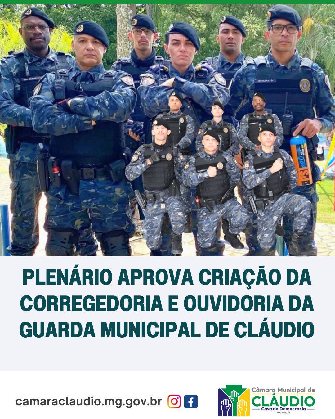 A Câmara Municipal de Cláudio aprovou em plenário, em dois turnos e redação final, o Projeto de Lei nº 28/2025, que cria a Corregedoria e a Ouvidoria da Guarda Municipal. A proposta, encaminhada pelo Executivo, seguiu para ser sancionada pelo prefeito, autor da norma.