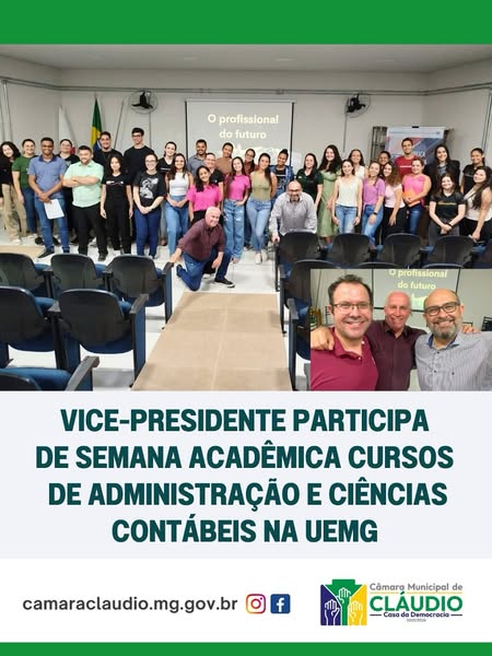 O vice-presidente da Câmara, vereador Kaká Amorim (Republicanos), representou o Poder Legislativo durante a IX Semana de Ciências Gerenciais, promovida pela UEMG unidade Cláudio.