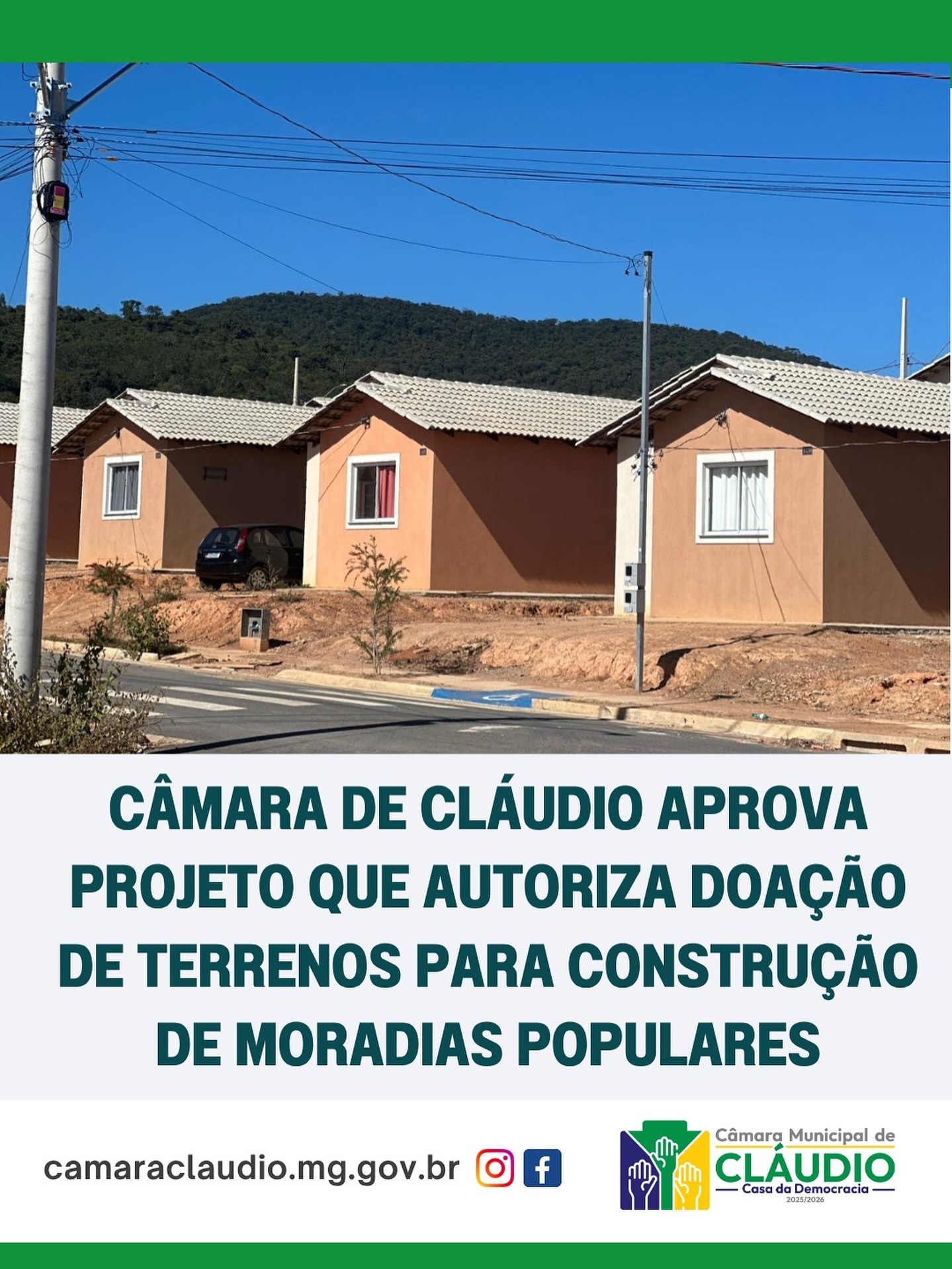 A Câmara Municipal de Cláudio aprovou, em dois turnos e na redação final, o Projeto de Lei nº 40/2025, que autoriza o Município a participar do Programa Minha Casa, Minha Vida, a doar terrenos públicos para famílias de baixa renda e a instituir o Fundo Municipal de Habitação. A medida foi votada após debate interno e, sobretudo, após a cobrança da Câmara, que promoveu audiência pública com moradores para discutir o déficit habitacional e o aumento dos preços de aluguel no município.