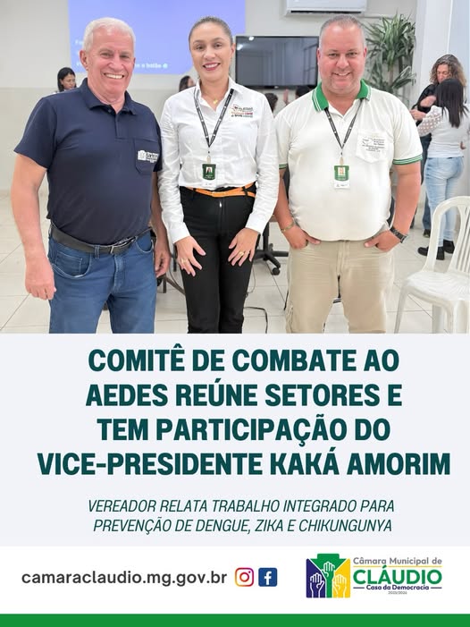 O vice-presidente da Câmara Municipal de Cláudio, vereador Kaká Amorim, é um dos participantes do Comitê Municipal Intersetorial Multidisciplinar de Combate ao Aedes aegypti, instância voltada ao enfrentamento de arboviroses como dengue, zika e chikungunya no município.