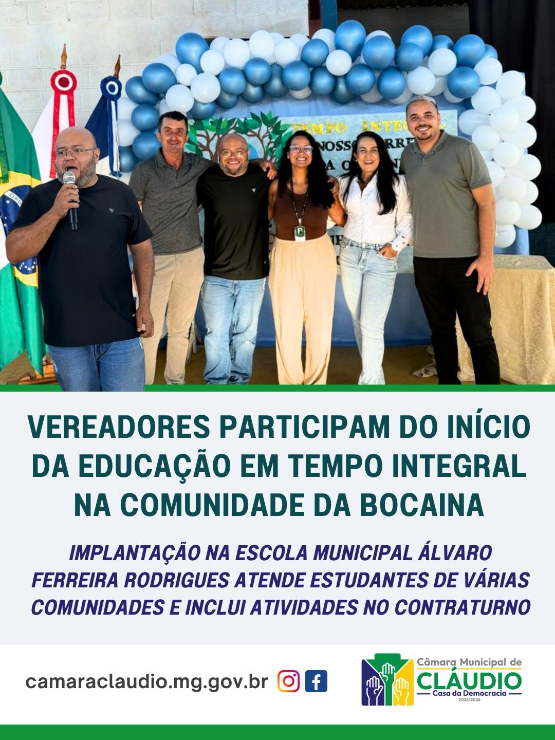 Vereadores da Câmara Municipal de Cláudio participaram do lançamento das atividades da educação em tempo integral na Escola Municipal Álvaro Ferreira Rodrigues, localizada na comunidade rural da Bocaina, ocorrida na semana passada.