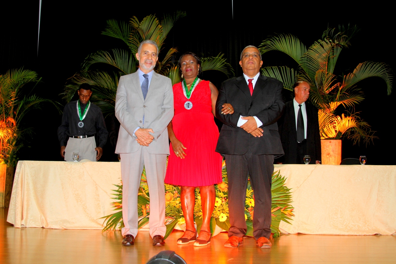 Estavam presentes na solenidade as seguintes pessoas: Exmo. Senhor Geraldo Lázaro dos Santos e Exmo. Senhor José Rodrigues Barroso de Araújo, respectivamente, Presidente da Câmara e Prefeito do Município de Cláudio; Élcio Lélis de Melo Jorge – Vice-prefeito do Município; vereador Heriberto Tavares Amaral - Vice-presidente da Câmara; os homenageados Senhor Luiz Antônio Evangelista e Sra. Maria Luzia dos Santos e os vereadores: Cláudio Tolentino, Evandro da Silva Oliveira, Geny Gonçalves de Melo, Heitor de Sousa Ribeiro, Maurilo Marcelino Tomaz, Reginaldo Teixeira Santos, Rosemary Rodrigues Araújo Oliveira e Tim Maritaca.